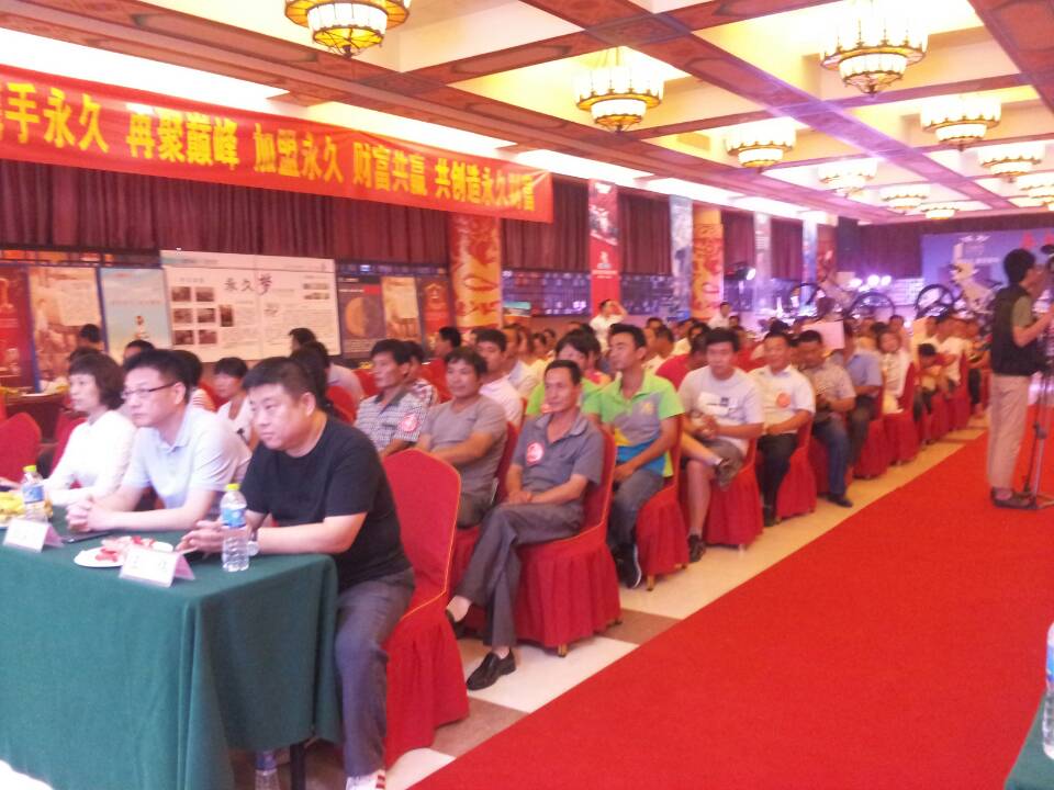 7月4日,上海永久在山东省临沂市羲之宾馆内举行了临沂地区电动车自行车招商会。永久临沂地区近300位当地经销朋友出席本次大会。